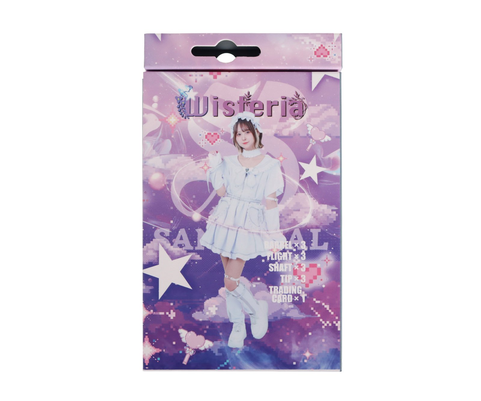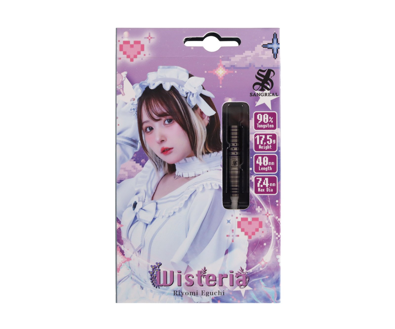 江口梨世美 Model SANGREAL Wisteria RIYOMI EGUCHI Model — 綻放美麗,翩翩起舞。帶著小惡魔的微笑,伴著每一隻鏢。這就是Wisteria— 如花般綻放,時而又如小惡魔般迷人。 SANGREAL品牌大使江口梨世美打造的「紫藤」款。 柔和的短錐形設計,打造柔和的線條。 精緻的環狀切割與點狀切割的巧妙結合,營造出輕柔引導指尖的觸感。 “我想要輕盈,卻又堅實的飛行。” 這份渴望,錒刻在小惡魔的印記上,展現出隱藏於其輝煌背後的內在力量。 ——優雅綻放,魅惑舞動。 帶著小惡魔般的微笑,陪伴你每一次揮灑。這就是紫藤。 ■SPEC 材質:鎢鋼90% 全長:40mm 最大徑:7.4mm 鏢身淨重:17.5g